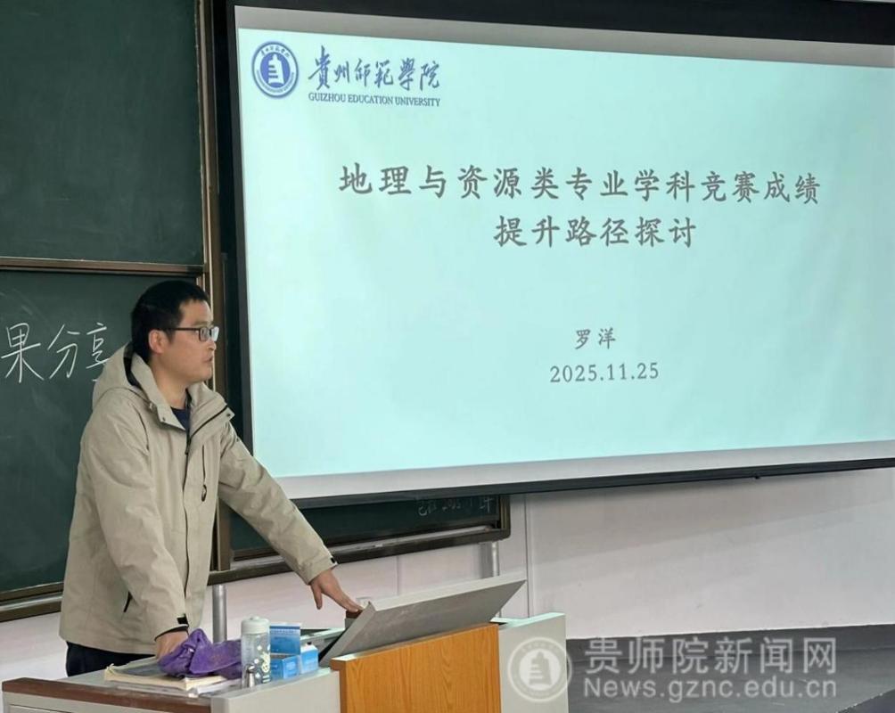 罗洋老师以“地理与资源类专业学科竞赛成绩提升路径探讨”为题作专题报告,系统剖析了学院本科生参与学科竞赛的现状与当前面临的挑战,并据此提出一系列针对性优化策略。他紧扣地理学科的专业特色,从选题定位、团队构建到成果打磨等多个环节,为同学们指明了清晰可行的备赛与成果转化路径,有效助力提升学科竞赛的综合竞争力。