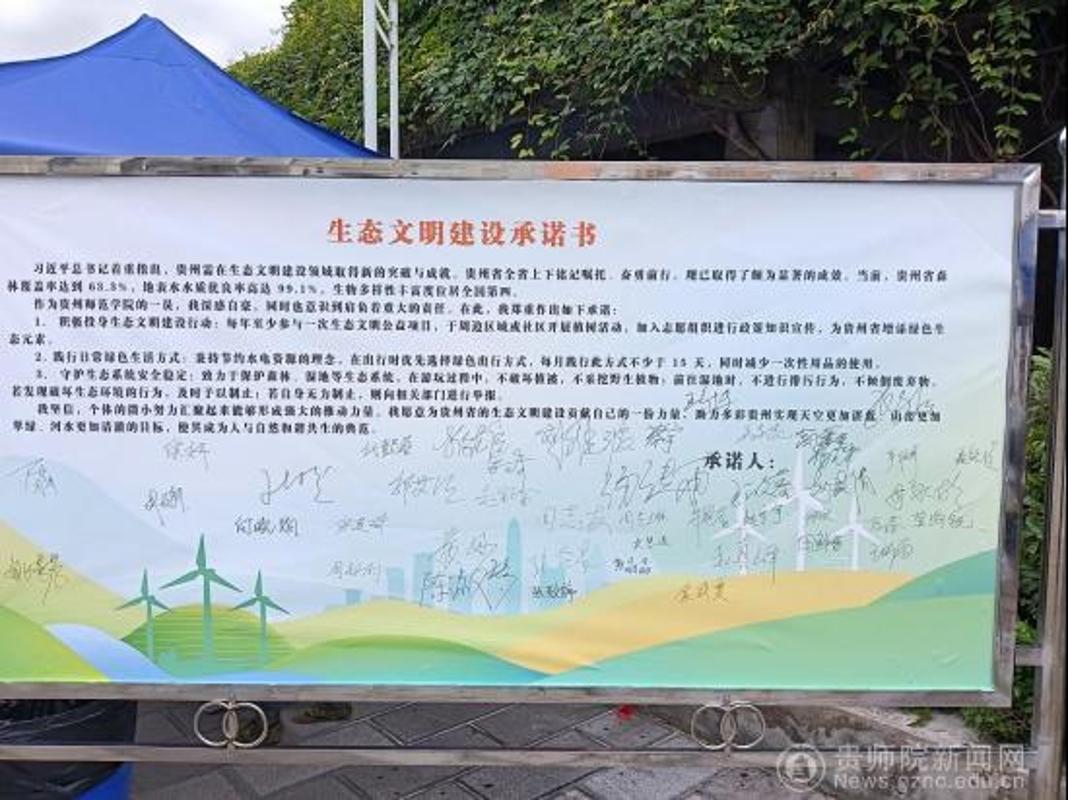 活动现场设置了互动区域,新生们在志愿者引导下随机抽取印有生态知识的宣传卡,卡片内容着重体现了习近平总书记关于贵州生态文明建设的重要讲话精神。随后,新生们在印有生态文明建设承诺书上签名,承诺在学习期间践行绿色生活方式,参与生态保护行动,传播生态文明理念。
